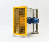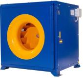 Вентилятор имеет радиальное рабочее колесо с назад загнутыми лопатками и специальный входной коллектор, корпус квадратного поперечного сечения с теплошумоизоляцией.
